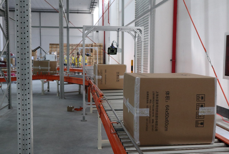 坐落于上海市奉贤区奉金路的水星家纺仓储物流中心,共有4个库房,目前已完工的一期项目中,贯穿四个库区的自动化输送分拣系统,输送线长达400多米,集成了转弯辊筒输送机、直行辊筒输送机、上下坡皮带输送机、水平皮带输送机、移栽机、分流、合流机构、电气控制及相应软件系统、不锈钢工作台等,并针对安全、消防要求、维护需要和现场工作环境的特殊需要,安装了消防辊道机、设备自身安装与维护所需要的钢结构检修通道及护栏、防撞设备、人员通行设备、急停按钮及报警装置等。