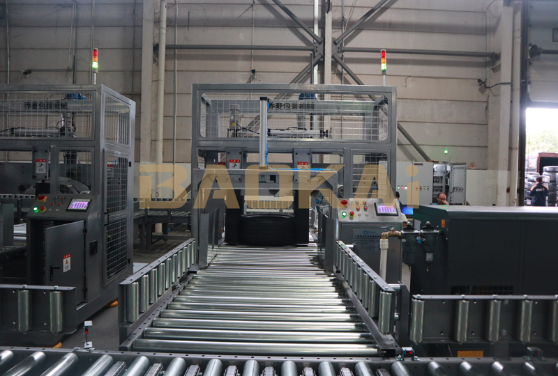 该项目主要集成了卧式环体打包机、输送线、直角分合流等硬件设备,配合EVO视讯自主开发的BCS智能软件系统,从技术上实现了前置扫描到后置贴标的全程实时跟踪。现场八台打包机可满足480个轮胎/时的打包效率,采用的分合流装置在输送效率可以满足未来960个轮胎/时的分合输送效率。整体三期项目上线后,可实现至少 1440 个轮胎/时的扫码、打包、贴标效率。