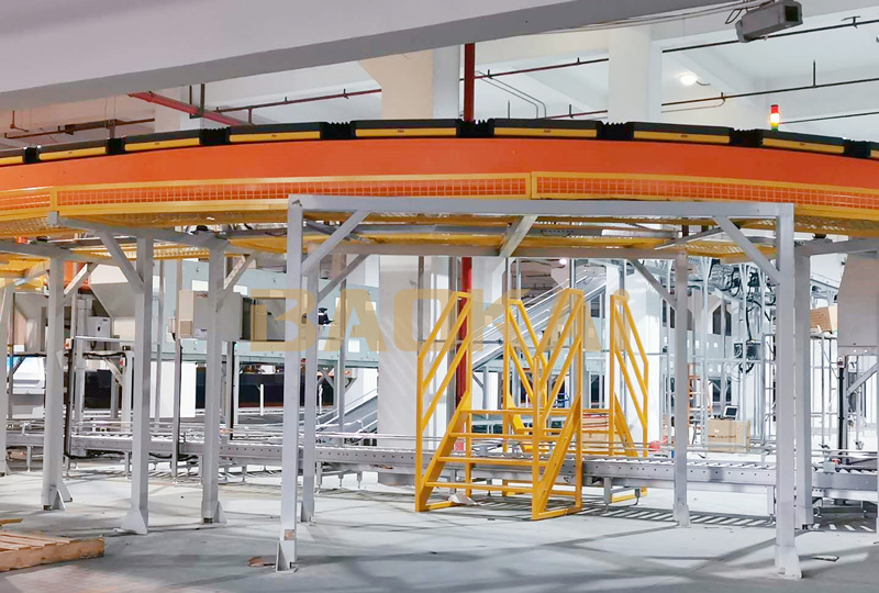 鞋服类大型项目,集成螺旋机,通道机,交叉带分拣机,提升机等智能设备和EVO视讯BICS信息管理系统,通道机效率达420箱/小时,分拣效率达8000-10000件/小时。