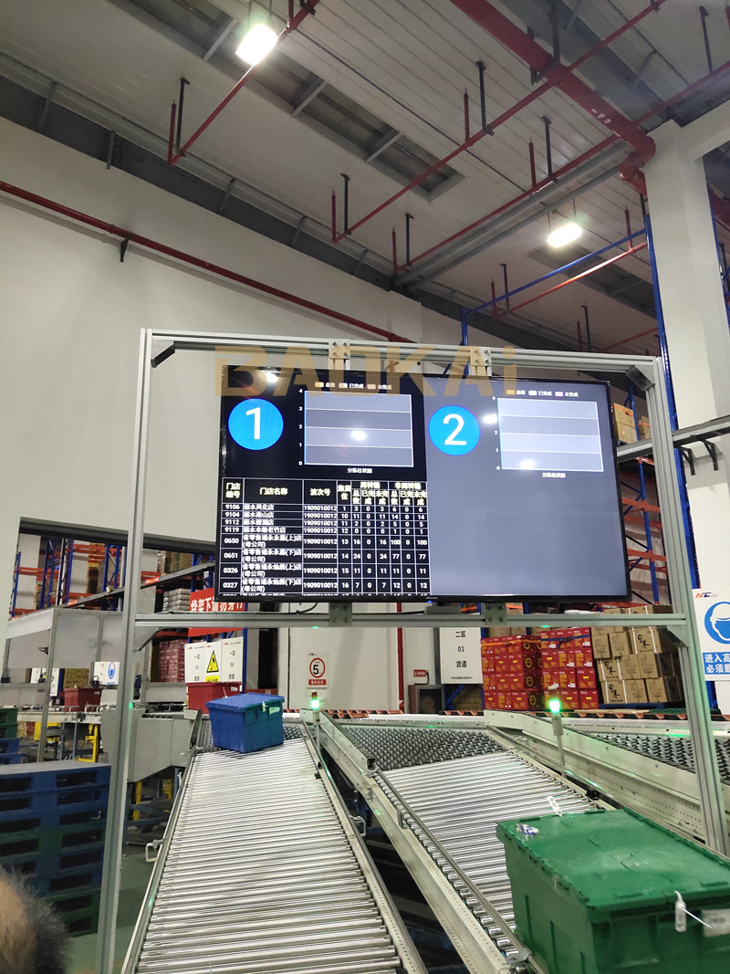 中石化易捷杭州物流配送中心项目:集成了智能称重扫描设备、滑块分拣机、输送设备、EVO视讯BICS智能管理系统,实现订单可视化管理,分拣效能可达6000箱/小时。